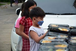 จัดตั้งโรงทานมอบอาหารกล่อง ,น้ำดื่ม และกาแฟขวดให้กับญาติโยมชุมชนวรนาถ จำนวน ๑๕๐ ชุด